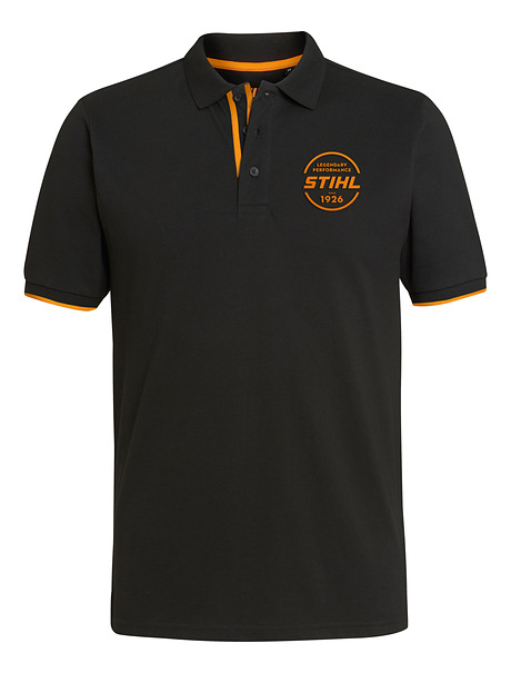 Polo regular fit in cotone piqué, con spacchetti laterali e polsini a costine con riga arancione. Logo STIHL stampato di alta qualità e leggermente testurizzato sul petto. Cuciture piatte all'interno, rifinite in modo decorativo in Vibrant Orange.